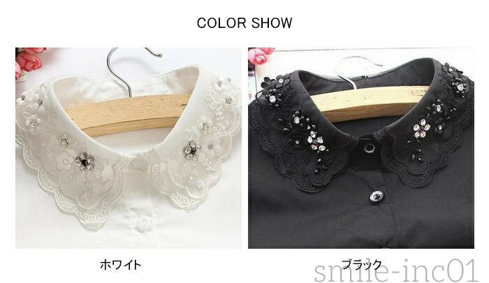 ■生産:中国製透け感のある花刺繍のレース、エレガントなつけ襟 流行に左右されない花刺繍、オールシーズン使えます やや透け感のある襟も魅力的 サイドに調節できるゴムバンドが付いてズレにくい