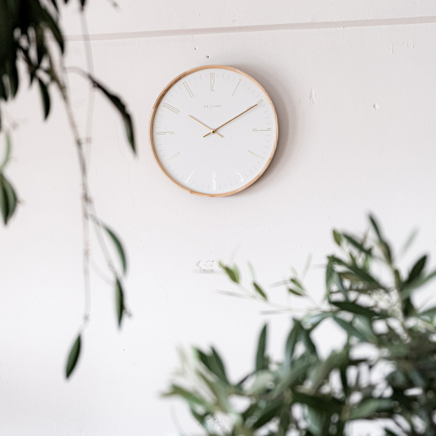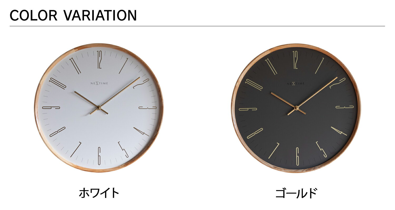 NeXtime ネクスタイム 掛け時計 ウォールクロック 壁掛け シンプル 木製 スイープムーブメント アナログ 音がしない 静音 Thin M ホワイト ゴールド 白 NXT-J008