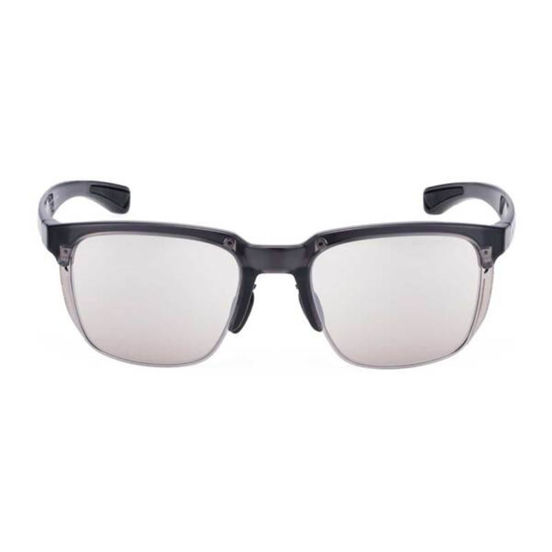 【仕様】 フレームカラー:クリアスモーク レンズカラー:503/シルバーミラー×調光クリア to スモーク(裏面マルチコート) 可視光線透過率:47%から17%(紫外線量により変化) 紫外線透過率:0.1%以下(UVカット99.9%以上) レンズ機能:調光レンズ、ミラーコート、裏面マルチコート レンズカーブ:6カーブ サイズ:高さ48mm / 横幅145mm 質量:26.5g フレーム機能:サイドフード有り,ノーズ幅調節可能 付属品:セミハードケース 生産国:日本製 対象年齢:大人用(男女兼用モデル)