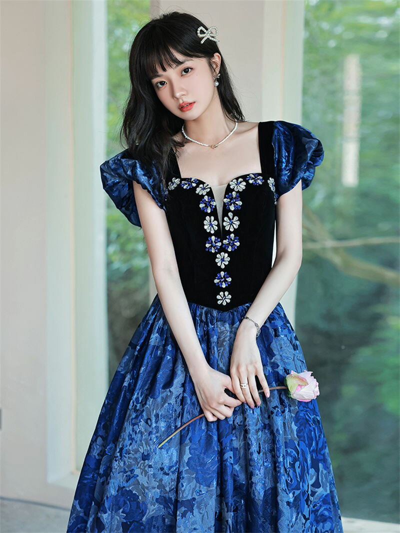 ウェディングドレス ウエディングドレス 2way カラードレス ロングドレス プリンセス ビスチェドレス パフスリーブ ブルー 演奏会 発表会 イブニングドレス パーティードレス 結婚式 二次会ドレス 花嫁 前撮り 披露宴 コンサート カクテルドレス 後撮り ブライダル 袖あり
