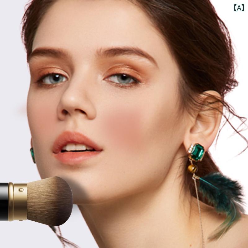 チークブラシ キャップ付き メイクブラシ フェイスブラシ 伸縮式 メイク道具 パウダーブラシ 化粧ブラシ 携帯用