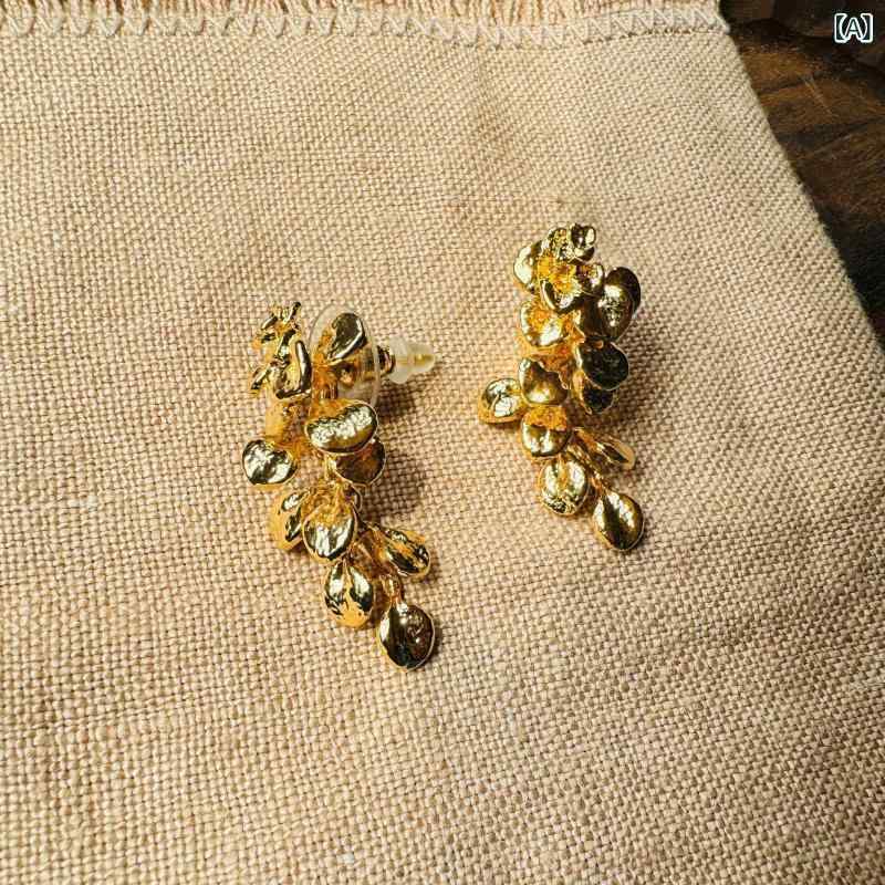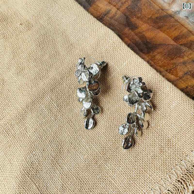 ピアス レディース 春夏 リーフタッセル イヤリング アクセサリー 上品 高級感 エレガント 花柄 ドロップ 電気メッキ加工 ジルコニア ギフト プレゼント