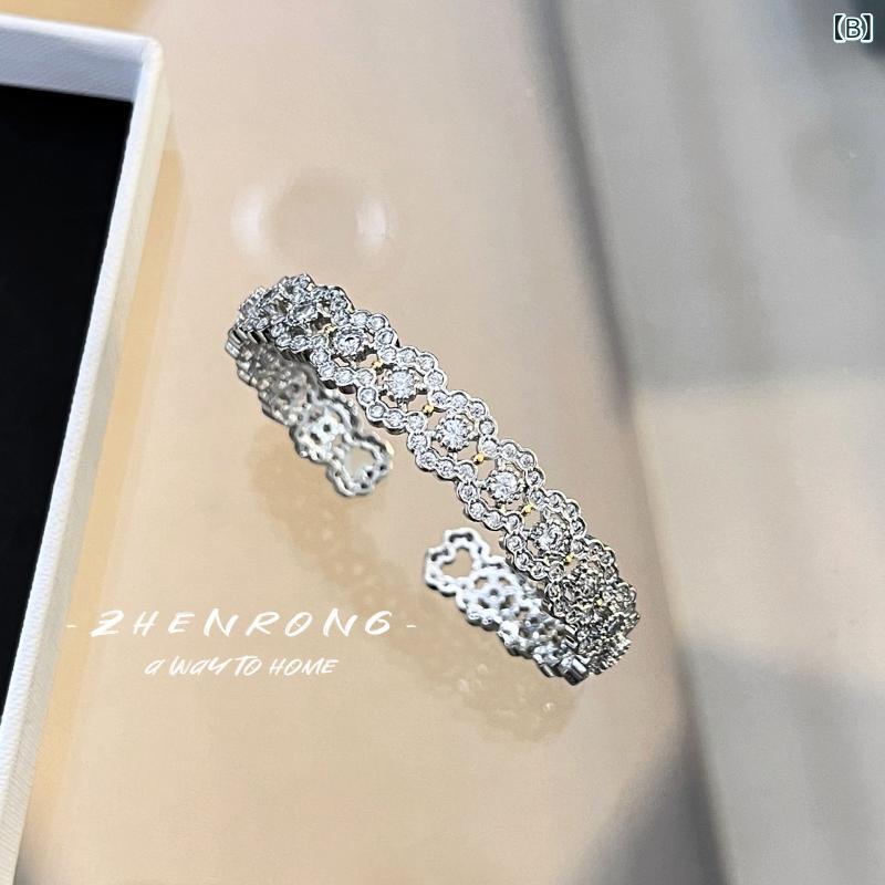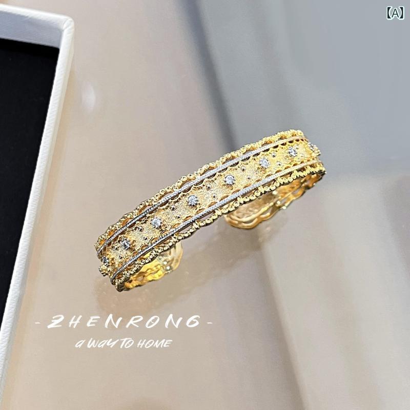 ブレスレット レディース 織り模様 彫刻 金色 花 ジルコニア バングル