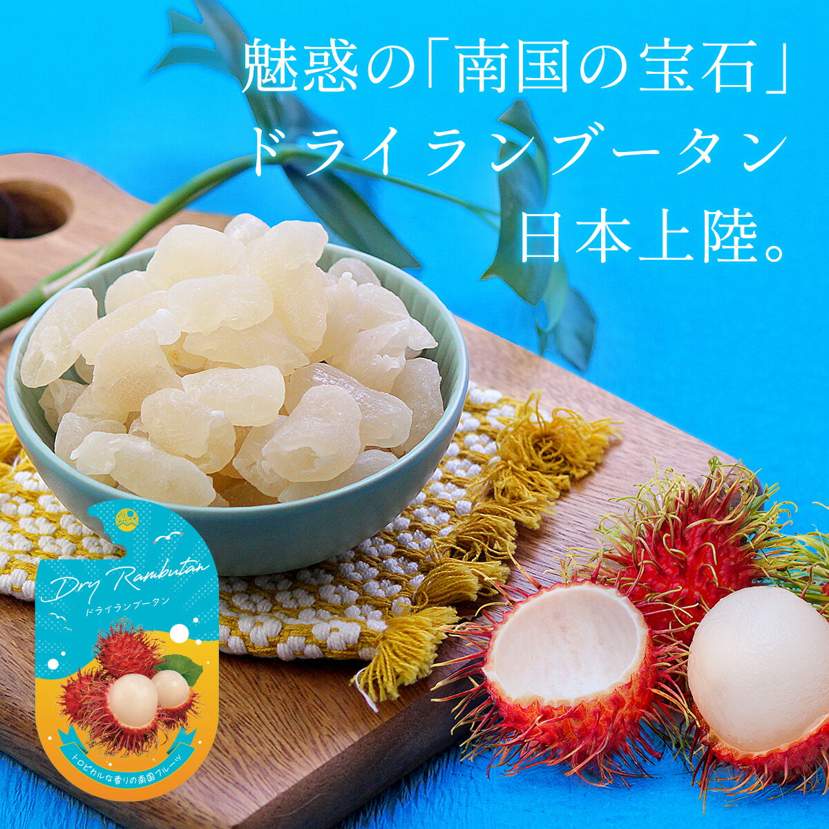 ●好奇心を刺激する、ランブータン ドライフルーツ上陸。 「ランブータン」という果物をご存知ですか? まだ日本ではめったにお目にかかれない、「毛むくじゃらのライチ」のような、神秘的で稀少なランブータンを、丁寧にドライフルーツにしました。 開けた瞬間に立ち上る甘いトロピカルな香りは、まさにアジアンリゾート。一口食べれば、まるで南国のビーチにいるかのような、甘くエキゾチックな香りが口いっぱいに広がり、あなたの知らない「美味しい」の世界へ誘います。 いつものドライフルーツに飽きたあなたへ、ぜひこの新しい味覚体験を。