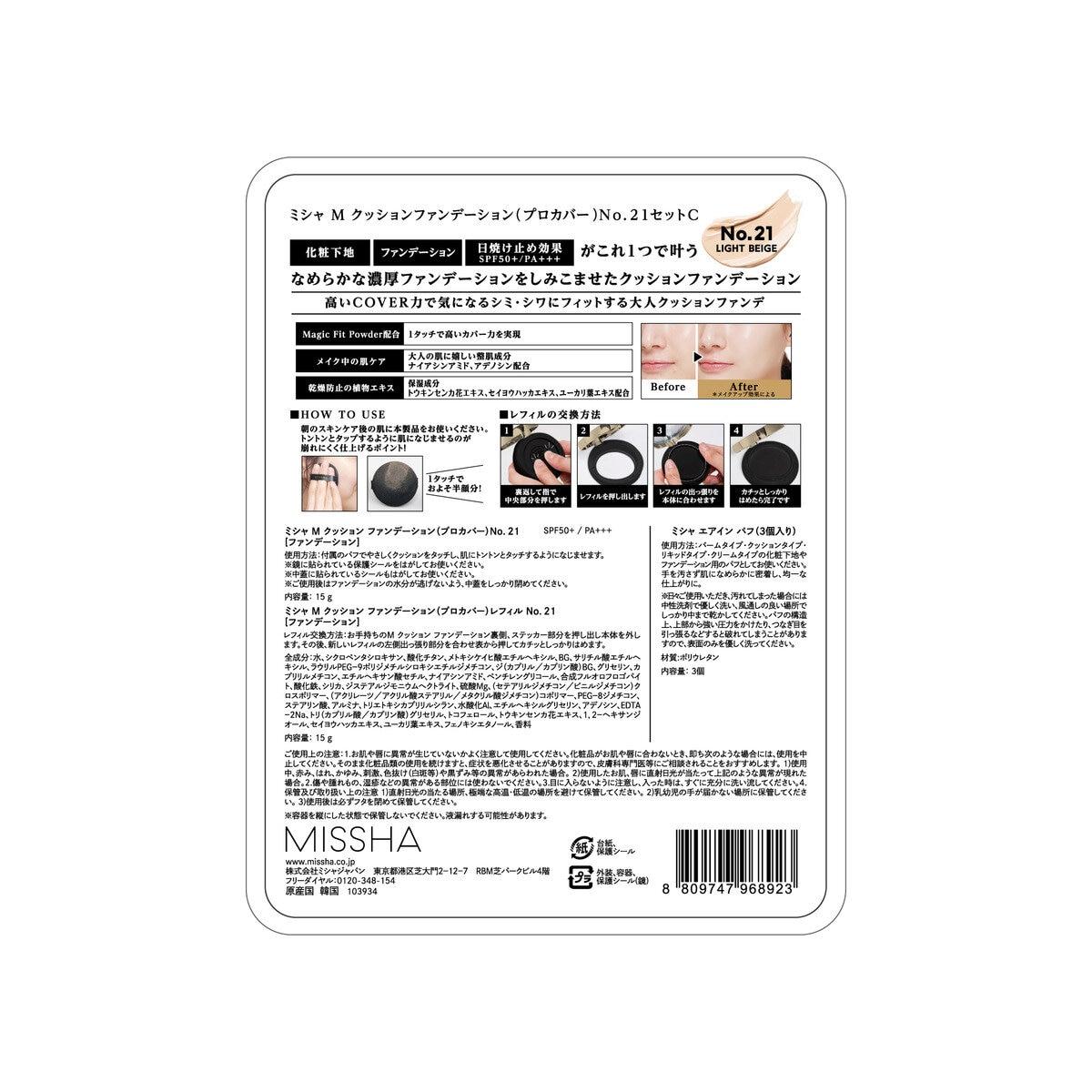 【セット内容】 ・ミシャ Mクッションファンデーション(プロカバー)×1 ・ミシャ Mクッションファンデーション(プロカバー) レフィル×1 ・ミシャ エアインパフ×3 肌悩みからの解放!シミ・シワをプロ級カバーする大人クッションファンデ。 スポンジでできた”クッション”に、なめらかな濃厚リキッドファンデーションを浸み込ませた軽い付け心地の新感覚クッションファンデーション。化粧下地・ファンデーション・日焼け止め対策がこれ1つでできる、オールインタイプのメイクアイテム。 スタンプするようにパッティングするだで、誰でも魔法のように簡単に、よれずにキレイなメイクを長時間キープができます。 外出先での化粧直しでも使える、便利なコンパクトタイプ。 弊社従来品よりも仕上がりのべた付き感を軽減。 さらに大人の肌にぴったりのエイジングケア*(年齢に応じた肌ケア)保湿成分ナイアシンアミド、アデノシンを配合し、メイクすることでピーンとハリ感のある印象に演出。 さらに植物保湿成分としてカレンデュラ、セイヨウハッカ、ユーカリエキスを配合しメイク中の肌をしっかり保護します。 SPF50+/PA+++ ---------- #コストコ #Costco