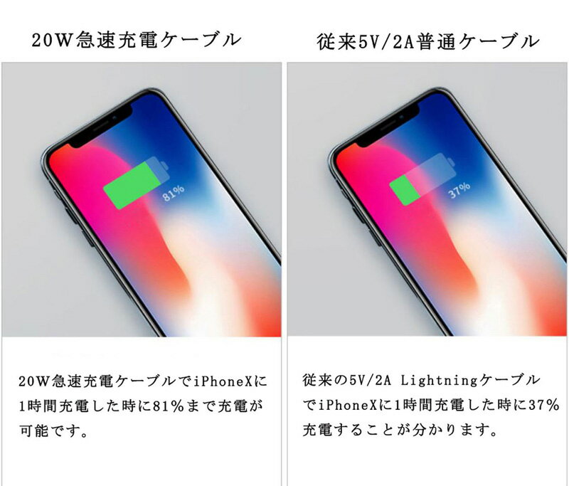 ■仕様 最大20W/18Wまでの電力を供給できるUSB-C Lightningケーブルです。 Type-CポートのPD充電器と合わせて使用していただくことで、ライトニングコネクタ製品に急速充電可能です。
