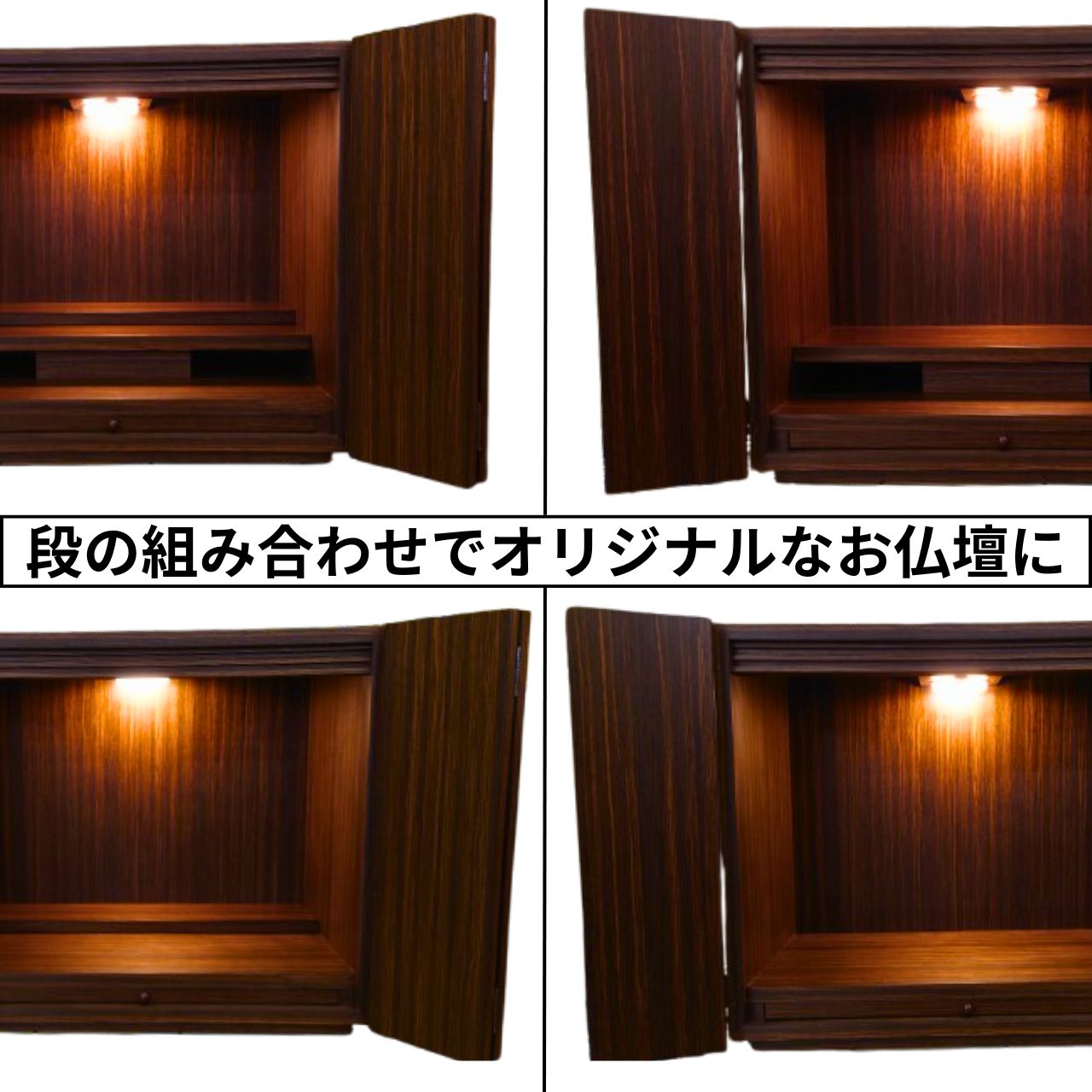 仏壇16号 ウォールナット コンパクト モダン ミニ 上置 ワイド モダン 朝涼 高48cm 仏壇 電装付 送料無料 仏具別 引き出し 家具調木製 マンション 手元供養