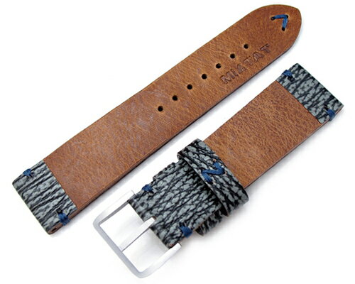 20mm MiLTAT 時計ベルト シャーク グレイッシュブルー / ブルーステッチ