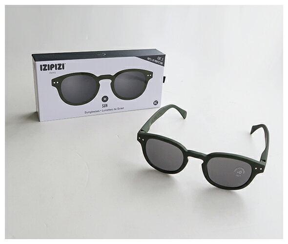 [IZIPIZI] Sun #C (Kaki Green-Grey Lenses) DESCRIPTION [IZIPIZI/イジピジ ] フランス・リヨン出身の 3 人の若者により、2010 年にパリで誕生したアイウェアブランドです。 その始まりは、彼らの両親のために「おしゃれで、機能的で、そしてリーズナブルなリーディンググラスをつくりたい」と思ったことがきっかけ。フランスらしい遊び心あるデザインと鮮やかなカラーで、キッズ用メガネ、老眼鏡からブルーライトカットのフレームやサングラスまで世界中のあらゆる世代に愛されています。 IZIPIZIの個性あふれるヴィンテージクラシックフレームが入荷です。 様々なシチュエーションにおいて強い紫外線から眼を守る99.9%UVカットのカテゴリー3レンズを使用した本モデル。 比較的どんな輪郭でも合うフレームなので、フレーム選びに悩まれている方におすすめです。 また、フレームが太めに作られているため、マットフレームの滑らかな質感や、色柄がきちんと表現されているのが特徴的。