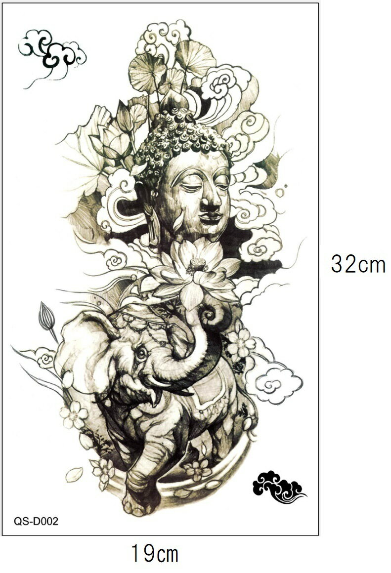 【1枚おまけ付】タトゥーシール ステッカー 大仏 ボディペイント 防水 大判 横19cm×縦32cm 2枚セット おまけ付 送料無料 ポスト投函