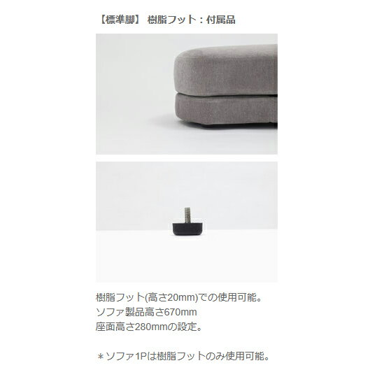 ■ソファ脚は樹脂フット、木製脚2色と金属脚1色の4種類から選べ、取り付ける脚によって大きく雰囲気が変わります。