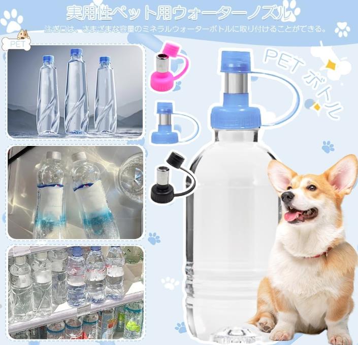 セット内容:ペット用ウォーターノズル 3本セット ;カラー:ピンク/ブルー/ブラックの各1個;サイズ:高さ4.5cm、注ぎ口直径1.5cm;材質:ABS樹脂+ステンレス;重量:20g;ヒント:一般的なミネラルウォーターのペットボトルに取り付け可能; ローラーボールの吐水口:ローラーボールで水の流れを止め、ペットが舌でローラーボールを舐めると、ローラーボールに変位が発生し、ローラーボールから水が流れ出る。 ペットが舐めるのを止めると、吐水口が自動的に閉じて水がこぼれるのを防ぎます。効果的に水の無駄遣いや飛散を防ぎ、ペットの体をドライで涼しく保ち、長毛犬にも適しています。 ペット用給水ボトルノズル:この給水ボトルノズルはペットを散歩に連れて行く時に欠かせません。小型犬、猫、ウサギ、リスなどの小型ペットに適しています。 取り付け簡単:持ち運びに便利で、水筒の飲み口に取り付けるだけです。散歩、ピクニック、キャンプなどのアウトドア活動に適しています。 ボトルキャップの代わりに、一般的なペットボトルに取り付けることができます。 定期的な洗浄:バクテリアの繁殖を防ぐため、使用後はすすぎ洗いをし、少なくとも週に一度は徹底的に洗浄することをお勧めします。ウォーキング、ピクニック、キャンプなどのアウトドア活動に最適。