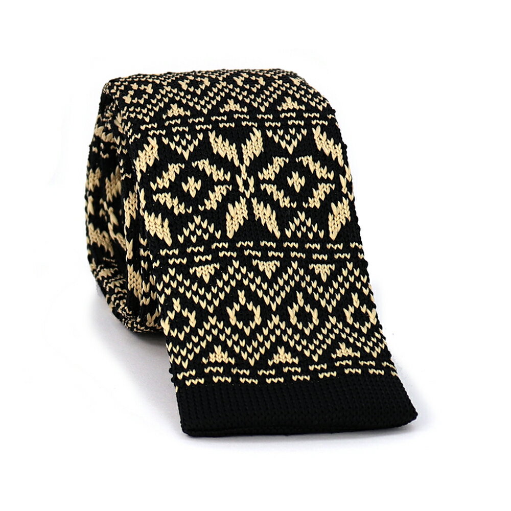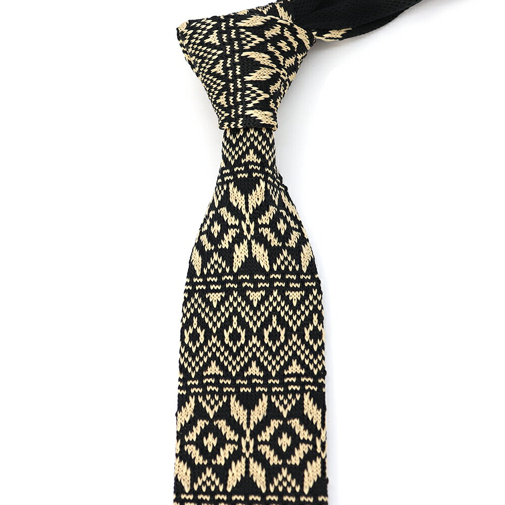 カジュアル ニットネクタイ ベージュ/ブラック 柄 おしゃれ かわいい ビジネス プロフェッショナル 服装 マッチング カジュアル スーツ 人気 プレゼント ギフト 6cm