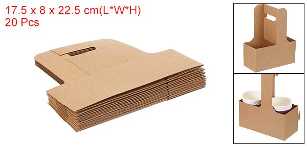 PATIKIL ハンドル付き2カップドリンクキャリア 20パックのクラフトペーパーボード製コーヒーカップホルダー 持ち運び可能な使い捨てハンドル付きドリンクキャリア テイクアウトレストランフードサービス用 茶色
