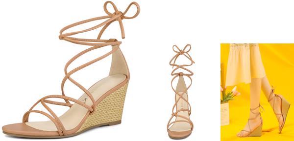 【属性2】レースアップサンダル、ストラップ、オープントゥ、ウェッジヒール