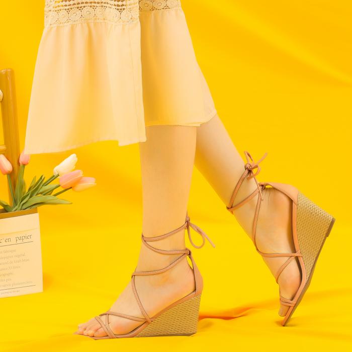 Allegra K レースアップ ストラップ ウェッジヒール サンダル レディース ヌード 24.5 cm