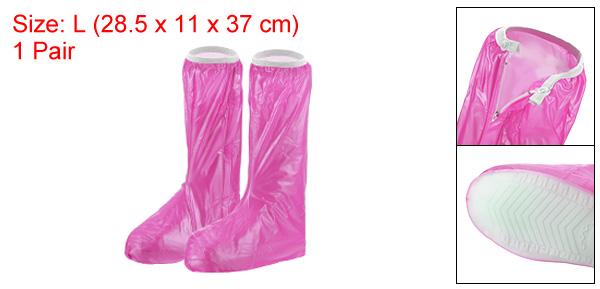 PATIKIL L 防水レインブーツ靴カバー 1ペア PVC 再利用可能 滑り止めオーバーシューズ 雨よけ スノーブーツプロテクター ジッパー付き 雨のアウトドア用 ピンク