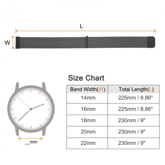 【属性5】注意 - 購入前にウォッチストラップのサイズを確認してください。定規を使用してウォッチインターフェースの幅を測定することができます(14mmバンド幅は14mmのウォッチラグに適合します)。