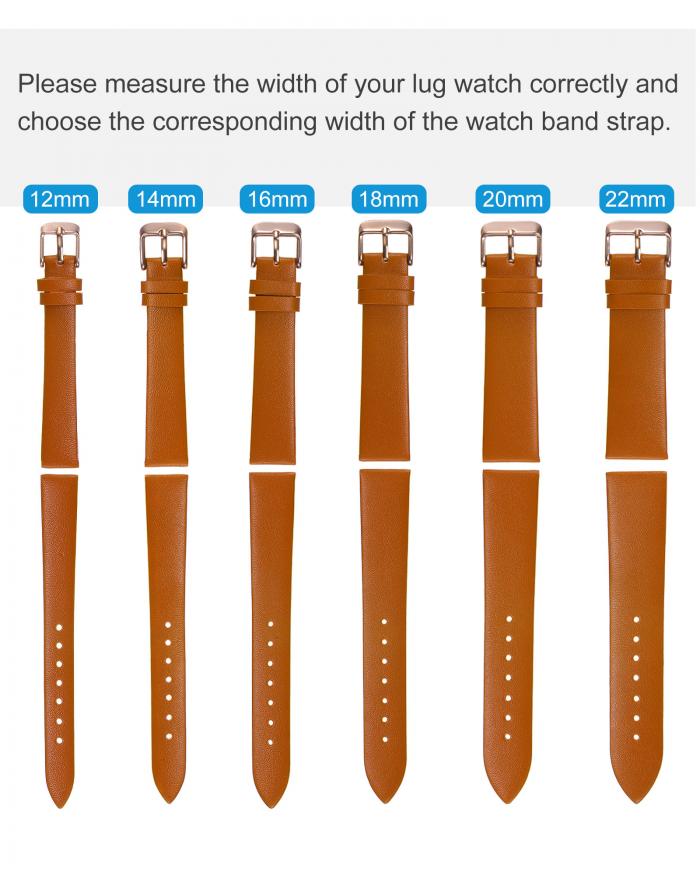 uxcell 茶色 本物 レザーバンド 幅22mm フラットで薄いエレガントなレザーウォッチストラップ ローズ金色 バックル 男性と女性用