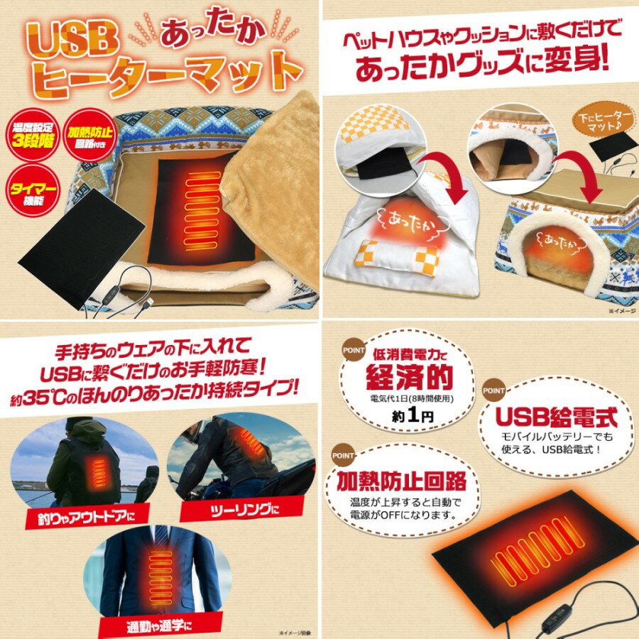 ■敷くだけであったかグッズに変身! ちょうどいい温度のUSBヒーターマット! ペットハウスやクッションに敷くだけであったかグッズに変身します!