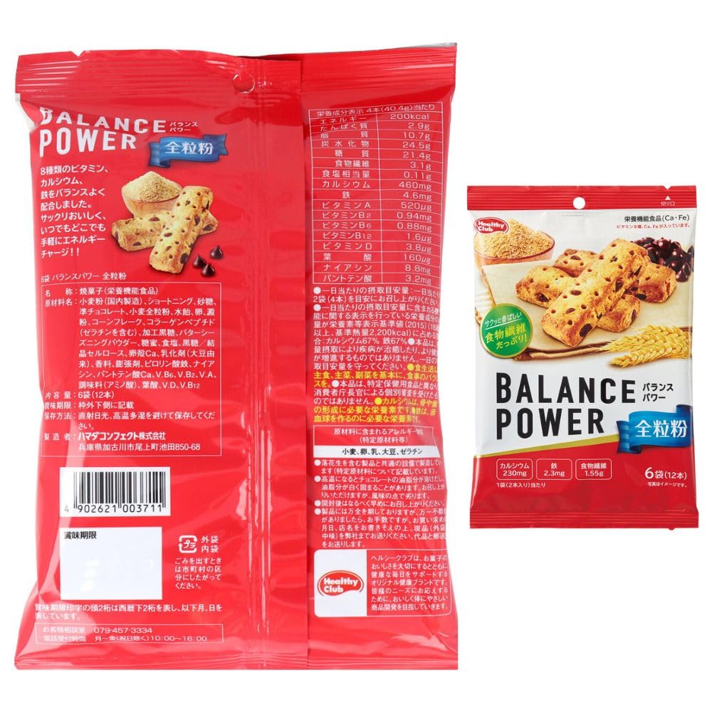 他店舗と在庫併用の為、品切れの場合はご容赦くださいませ。 商品の説明 ・本品は多量摂取により疾病が治癒したり、より健康が増進するものではありません。1日の摂取目安量を守ってください。 ・食生活は、主食、主菜、副菜を基本に、食事のバランスを。 ・本品は、特定保健用食品と異なり、消費者庁長官による個別審査を受けたものではありません。 原材料・成分 小麦粉(国内製造)、ショートニング、砂糖、準チョコレート、小麦全粒粉、水飴、卵、澱粉、コーンフレーク、コラーゲンペプチド(ゼラチンを含む)、加工黒糖、バターシーズニングパウダー、糖蜜、食塩、黒糖/結晶セルロース、卵殻Ca、乳化剤(大豆由来)、香料、膨張剤、ピロリン酸鉄、ナイアシン、パントテン酸Ca、ビタミンB6、ビタミンB2、ビタミンA、調味料(アミノ酸)、葉酸、ビタミンD、ビタミンB12※商品パッケージ及び内容量は、メーカー都合により変更になる場合がありますので事前にご了承ください。また、一部欠品が発生した場合はパランスパワー別商品を代替えすることがございます。※重複する味がでることもご理解お願いいたします。