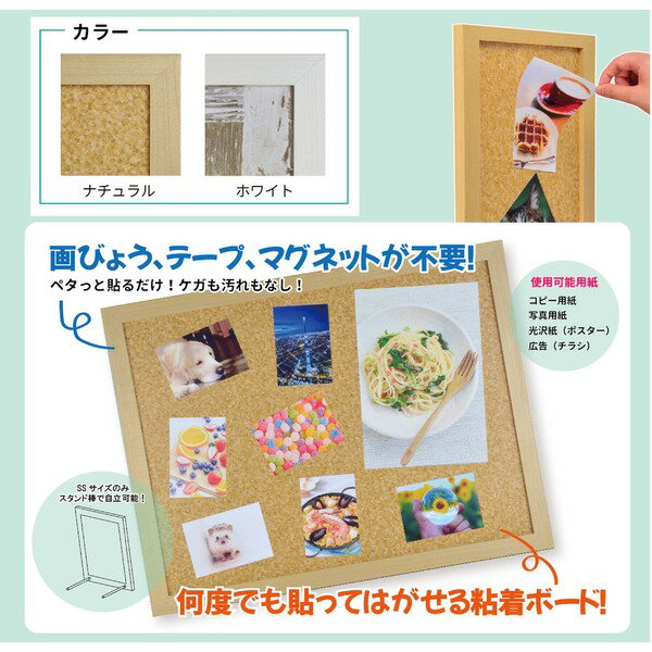 ■商品内容貼り直しできる、画びょう・テープ・マグネットが不要!何度でも貼ってはがせるフレーム。壁掛けにもにも使えます。主な使用可能用紙:コピー用紙・写真用紙・光沢紙(ポスター)・公告(チラシ)OA-A2サイズの額(粘着面寸法:586×436mm)壁掛けひも付き