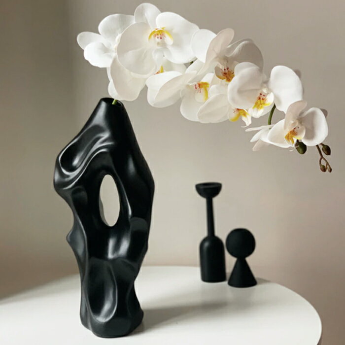 花瓶 おしゃれ 陶器 かびん フラワーベース 北欧風 陶器 おしゃれ ブラック/Black [送料無料 輸入品] インテリア小物 輸入雑貨 海外