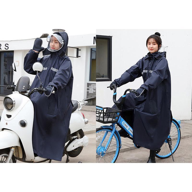 レインコート 自転車 レインウェア ロングタイプ カッパ レディース メンズ ダブルバイザー 通勤 通学 ハンドカバー 反射テープ 合羽