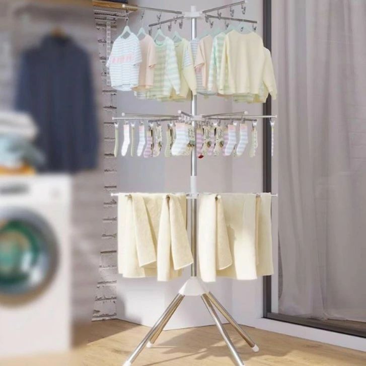 室内干し 折りたたみ 部屋干し 洗濯物干し 物干しスタンド 3段 ピンチ付き 360度回転 ピンチハンガー パラソルハンガー ベランダ用 大容量 省スペース 室内・屋外兼用 滑り止め 洋服 タオル干し ステンレス製 組み立て簡