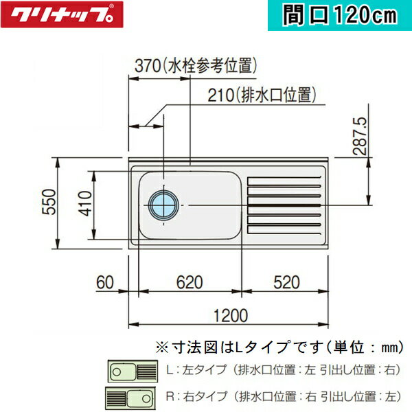 TAT-120MTR クリナップ CLEANUP 木キャビキッチン さくら 流し台120cm 底面ステンレス貼り 置網棚付 点検口付 ホワイト 右タイプ 送料無料