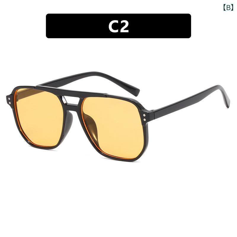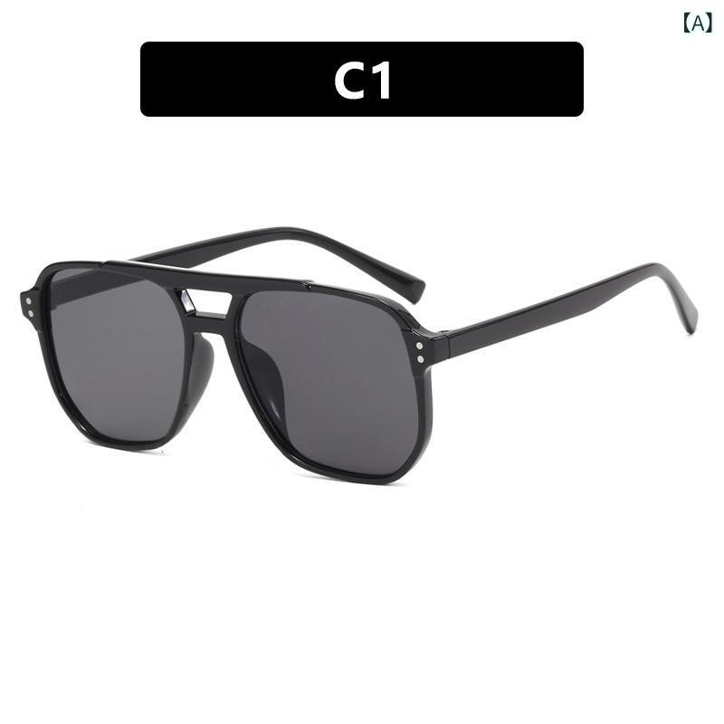 サングラス 男女兼用 スクエアフレーム ダブルブリッジ リベット UVカット UV400 紫外線対策 レトロ ヴィンテージ おしゃれ ファッション PC素材 運転 ドライブ アウトドア 旅行 スポーツ 普段使い 春夏 ブラック グレー ブラウン ブルー