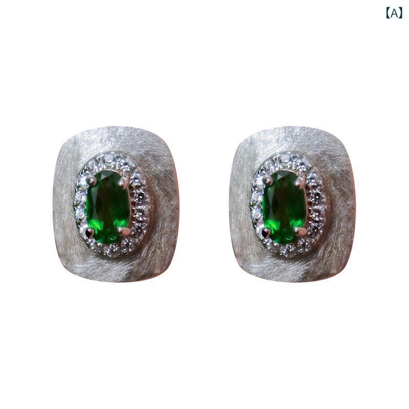 ピアス レトロ フレンチスタイル 上品 天然エメラルドグリーン ジルコニア スタッド ヘアライン加工 アンティーク加工 繊細 シンプル 銅製 U字 幾何学モチーフ デイリー カジュアル 普段使い