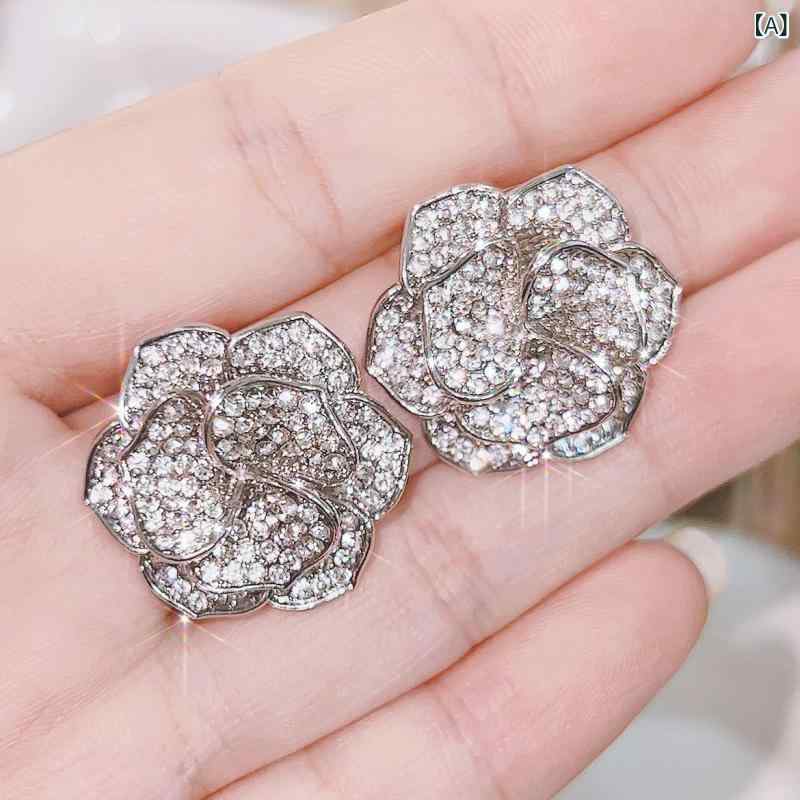 ピアス レディース 女性用 バラ 花モチーフ フレンチシック マイクロパヴェ 繊細 上品 ライトラグジュアリー 高級感 おしゃれ 万能 普段使い オフィス パーティー 合金 電気メッキ加工 シルバー 秋冬