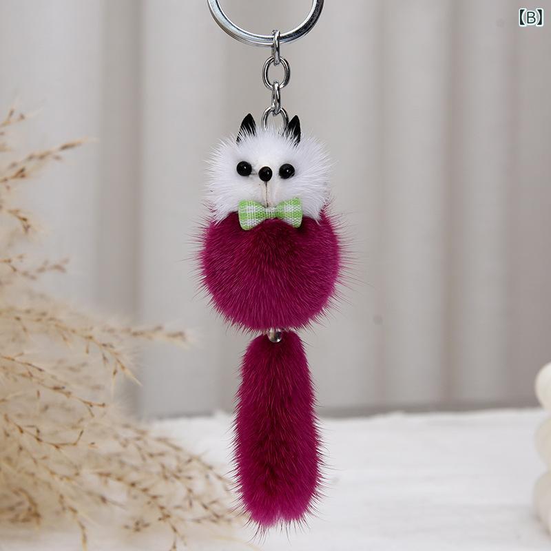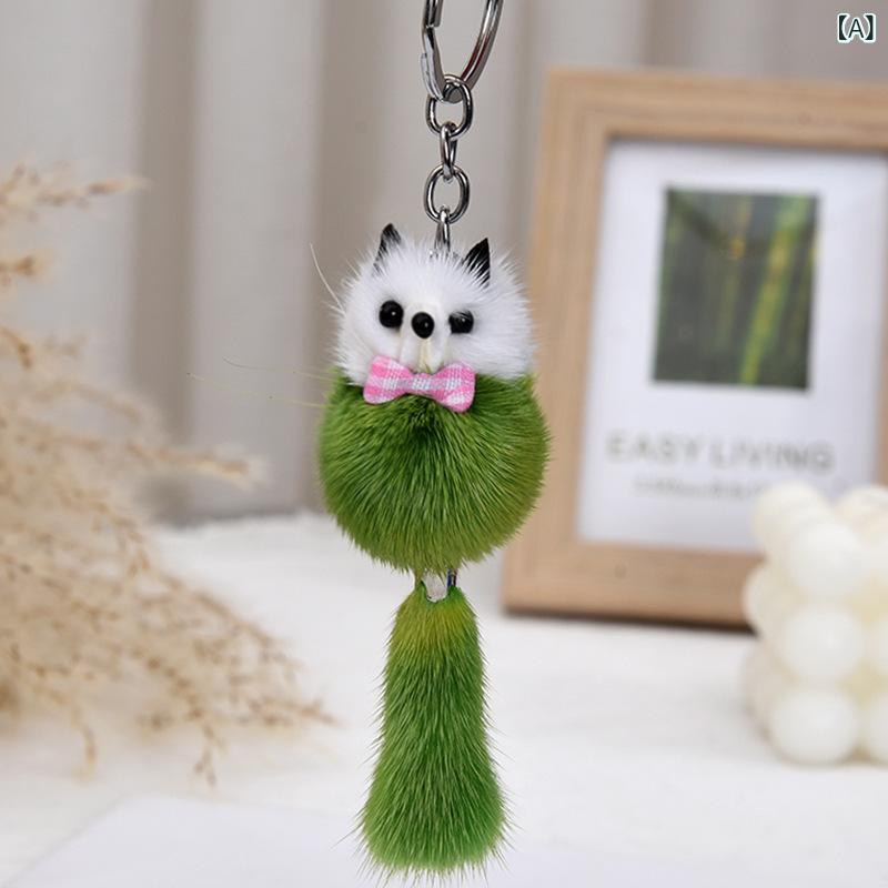 チャーム ミンクファー フォックス ぬいぐるみ マスコット かわいい ミニ キーホルダー バッグ 鞄 リュック スマートフォン 携帯ストラップ 車の鍵 ブラック ピンク ブルー グリーン ブラウン