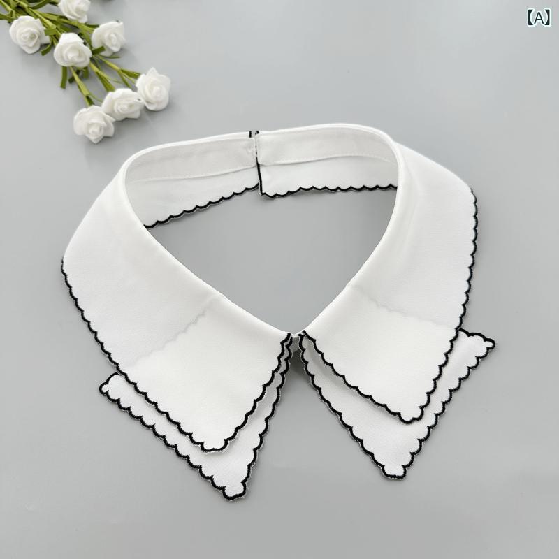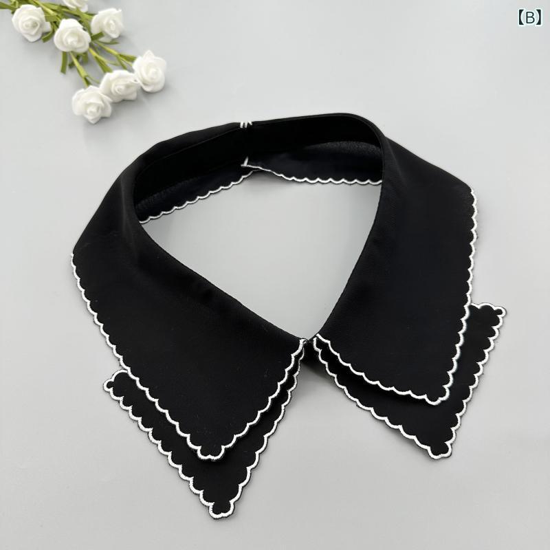 付け襟 レディース 波型フリル 配色 刺繍 ビーズ装飾 シフォン フェミニン ガーリー かわいい ブラウス シャツ ワンピース 重ね着 エレガント おしゃれ 上品 アイボリー ブラック フォーマル カジュアル ファッション小物 ポリエステル