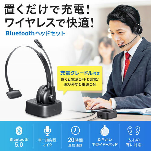サンワサプライ Bluetoothヘッドセット 単一指向性マイク・充電クレードル付き MM-BTMH67BK
