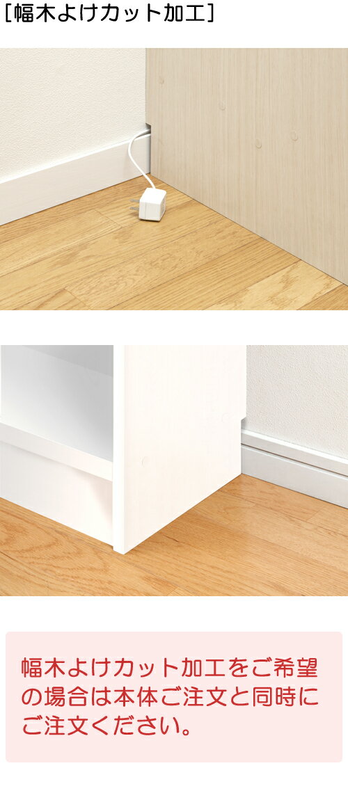 幅木カット加工は本体とご購入時に同時にご注文ください。価格は1台分の加工料金です。 タイプ 幅木よけカット加工(オプション1台分) ホルムアルデヒド 放散区分 F★★★★ (フォースター) 生産国 日本製 オプション 本体ご注文と同時にご注文下さい。本体幅90cm奥行き29.5cm 本体サイズ カウンター下収納 タイプ 高さ 奥行 幅 70〜89cm 17.5cm(薄型) 60.4cm オープン 扉付(通常) ポリ扉付 - - 90.2cm オープン 扉付(通常) ポリ扉付 - - 120cm オープン 扉付(通常) ポリ扉付 - - 29.5cm 60.4cm オープン 扉付(通常) ポリ扉付 - - 90.2cm オープン 扉付(通常) ポリ扉付 引戸(通常) ポリ引戸 120cm オープン 扉付(通常) ポリ扉付 引戸(通常) ポリ引戸 90〜110cm 17.5cm(薄型) 60.4cm オープン 扉付(通常) ポリ扉付 - - 90.2cm オープン 扉付(通常) ポリ扉付 - - 120cm オープン 扉付(通常) ポリ扉付 - - 29.5cm 60.4cm オープン 扉付(通常) ポリ扉付 - - 90.2cm オープン 扉付(通常) ポリ扉付 引戸(通常) ポリ引戸 120cm オープン 扉付(通常) ポリ扉付 引戸(通常) ポリ引戸 幅木よけカット加工(オプション1台分)