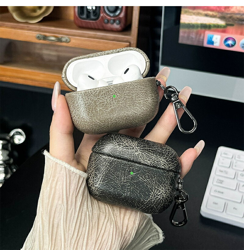 Airpods4 ケース エアーポッズ4 ケース 2024 オイルレザー柄 Airpods 第4世代 カバー ソフト Airpods4 カバー かっこいい 高品質 Airpods ケース Airpods第4世代 人気 紛失防止 Airpods4 保護ケース 全面保護 耐衝撃 カラビナ付き 2024年最新