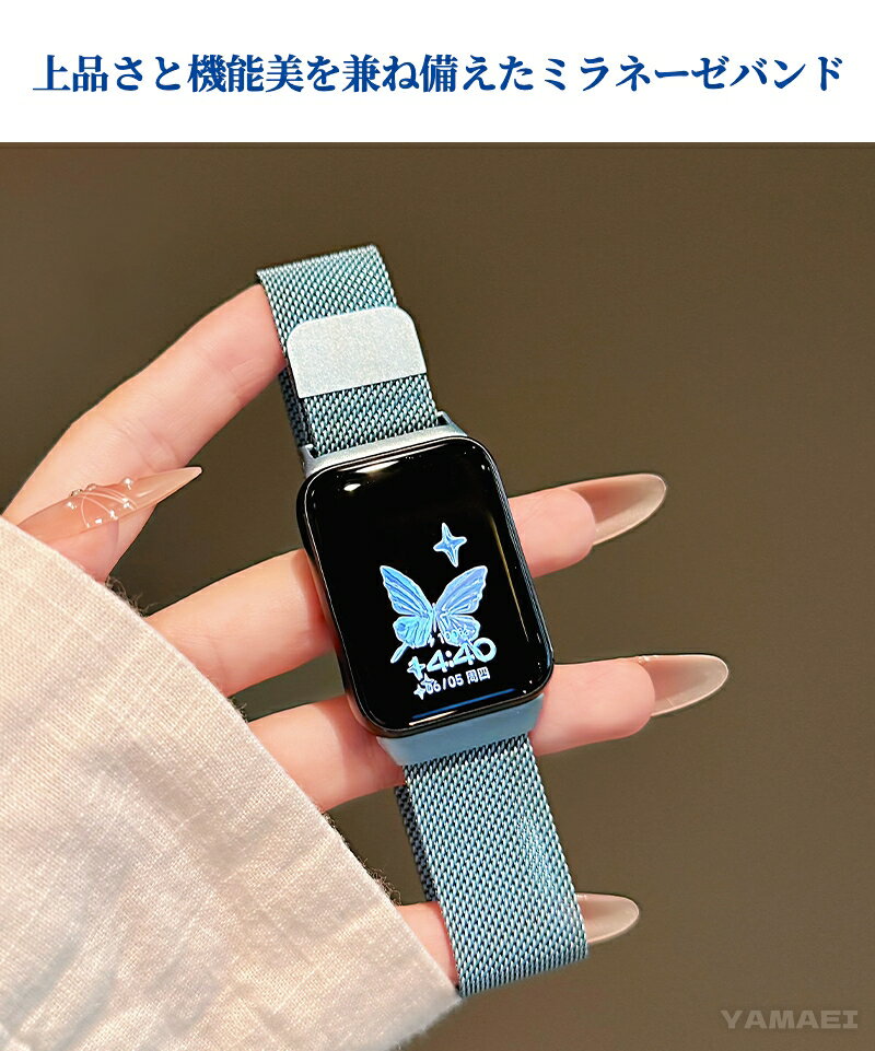 シャオミ スマートバンド9pro 交換 xiaomi smart band 9pro 交換バンド xiaomi スマートバンド 9 pro 8 pro バンド ベルト ミラネーゼ ステンレス メッシュ マグネット式 着脱簡単 高級感 ビジネス メンズ レディース 替えベルト 交換用 軽量 通気性 ギフト
