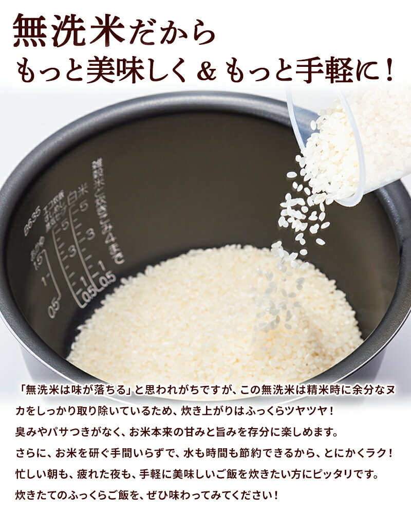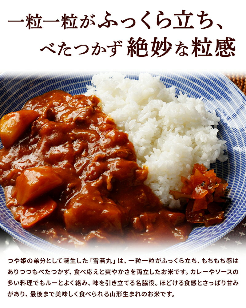 商品内容BG無洗米山形県産 雪若丸 5kg×2袋※パッケージは予告なく変更される場合がございます。あらかじめご了承ください。 商品説明一粒一粒がふっくら立ち、べたつかず絶妙な粒感つや姫の弟分として誕生した「雪若丸」は、一粒一粒がふっくら立ち、もちもち感はありつつもべたつかず、食べ応えと爽やかさを両立したお米です。カレーやソースの多い料理でもルーとよく絡み、味を引き立てる名脇役。ほどける食感とさっぱり甘みがあり、最後まで美味しく食べられる山形生まれのお米です。無洗米だからもっと美味しく&もっと手軽に!「無洗米は味が落ちる」と思われがちですが、この無洗米は精米時に余分なヌカをしっかり取り除いているため、炊き上がりはふっくらツヤツヤ!臭みやパサつきがなく、お米本来の甘みと旨みを存分に楽しめます。さらに、お米を研ぐ手間いらずで、水も時間も節約できるから、とにかくラク!忙しい朝も、疲れた夜も、手軽に美味しいご飯を炊きたい方にピッタリです。炊きたてのふっくらご飯を、ぜひ味わってみてください! 発送時期ご注文より6営業日以内 原材料無洗米 雪若丸 保存方法冷暗所で保管し、なるべくお早めにお召し上がりください。※開封後は空気に触れることで酸化が進み、風味が落ちるため、基本的には冷暗所での保管をお願いいたします。特に夏場は、冷蔵庫での保管をおすすめいたします。 お召上がり方無洗米ですのでそのまま炊飯器で炊いてお召し上がりください。 配送方法[常温便] ヤマト運輸 送料込※沖縄へのお届けは送料が別途880円かかります。 ギフト対応不可 不正注文について不正購入と判断した場合にはご注文を取り消しさせて頂く場合があります。 製造・加工(株)東北食糧 山形県山形市立谷川2丁目1250-3 販売者やまがた物産振興機構〒993-0015 山形県長井市四ツ谷2丁目1番26号メールでのお問い合わせ⇒yamagata-kikou@shop.rakuten.co.jp電話でのお問い合わせ⇒0238-83-2160FAXでのお問い合わせ⇒0238-83-2203\粒立ちが自慢のさっぱり系/山形県産 雪若丸BG無洗米 5kg×2袋発送:ご注文より6営業日以内