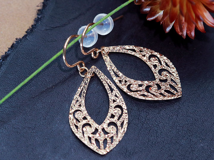 K18PGピンクゴールド ピアス 透かしデザイン ヒラヒラ揺れる フック式 受注品 /送料無料