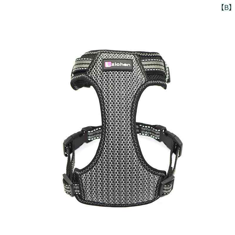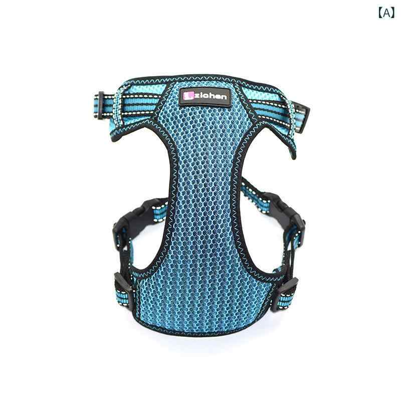 犬用ハーネス 犬用胴輪 ナイロンメッシュ 通気性 散歩用 反射材 ブルー ブラック レッド ピンク(x2)