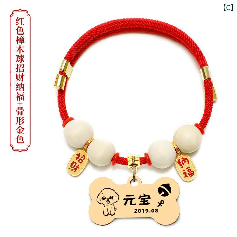 首輪 猫 犬 用 刻印可能 招財納福 樟木ボール付き ペット ネックレス XS S M L 防虫 防虱 除蚤 小型犬 中型犬 赤