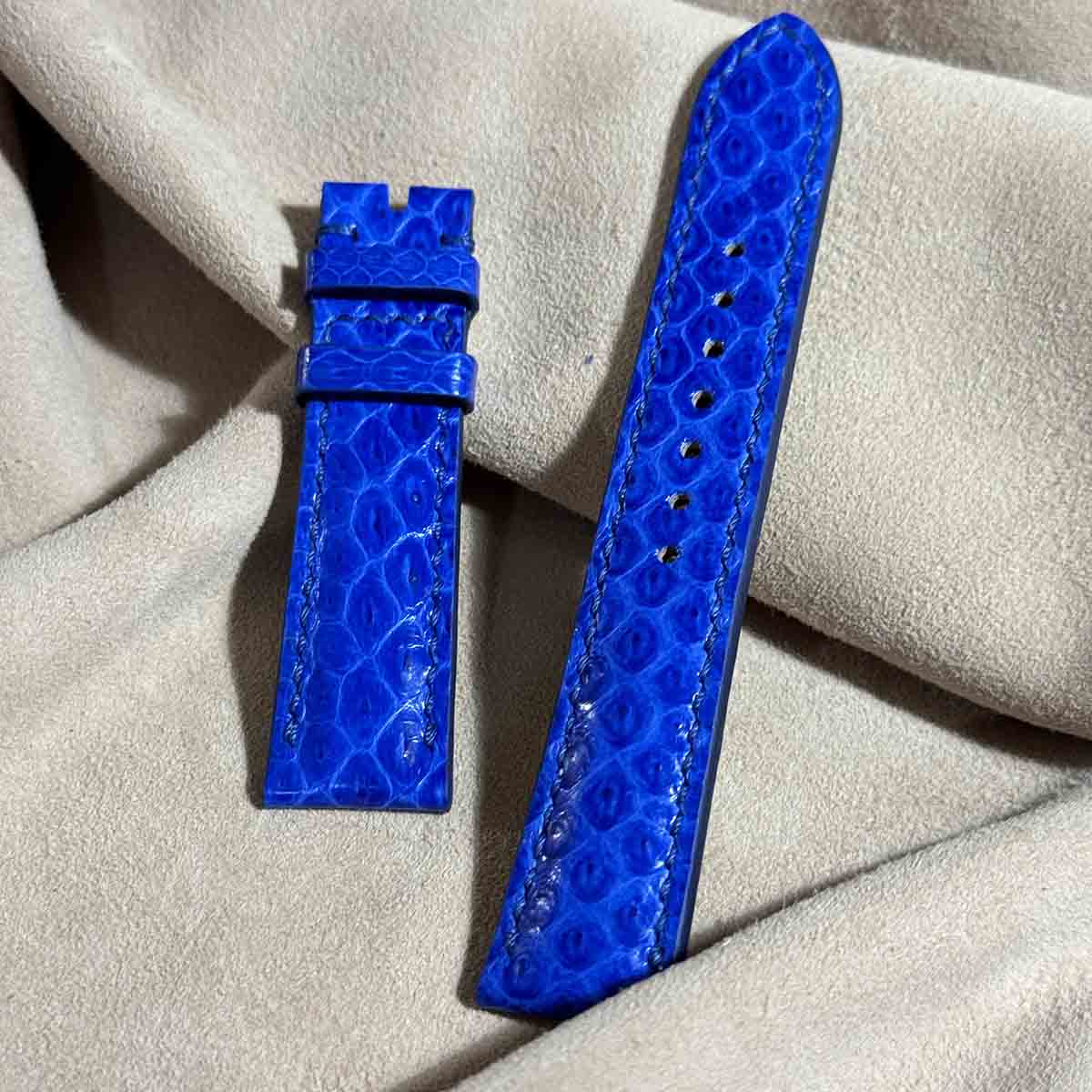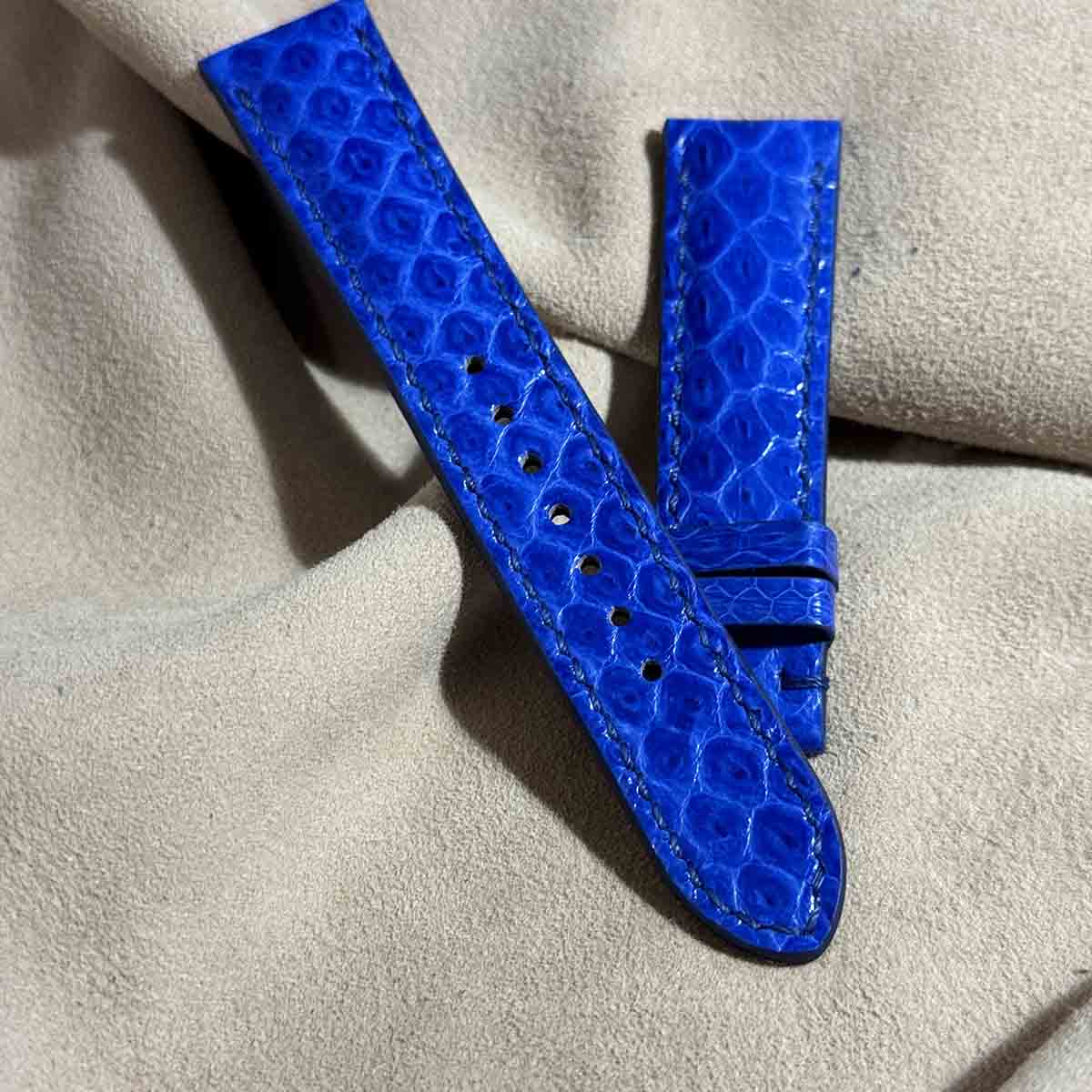 sna-94 シースネイク(ウミヘビ) レザー 腕時計 ベルト ブルー (ラグ幅20 mm - バックル幅18 mm) 1点物のシースネイクレザー 腕時計用ベルト