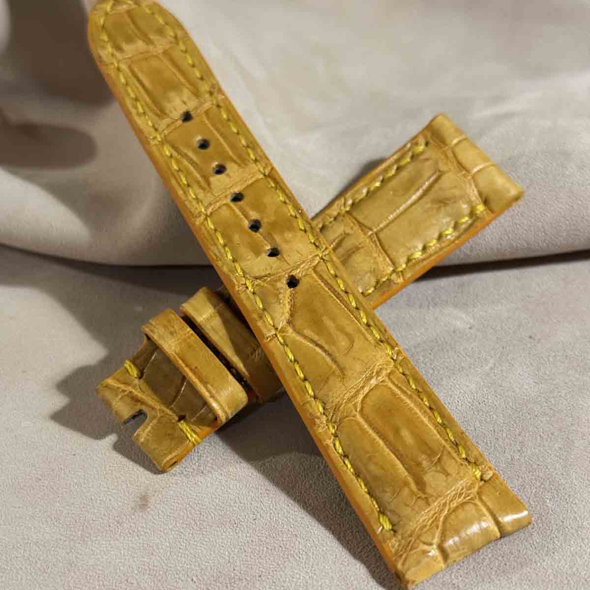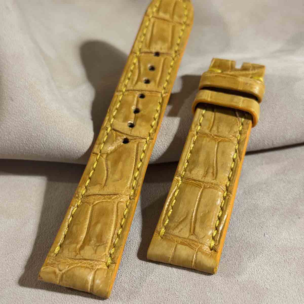 cro-1747 クロコダイル ヌバックレザー 腕時計 ベルト タンブラウン (ラグ幅20 mm - バックル幅18 mm) 1点物のクロコダイルレザー 腕時計 替えベルト