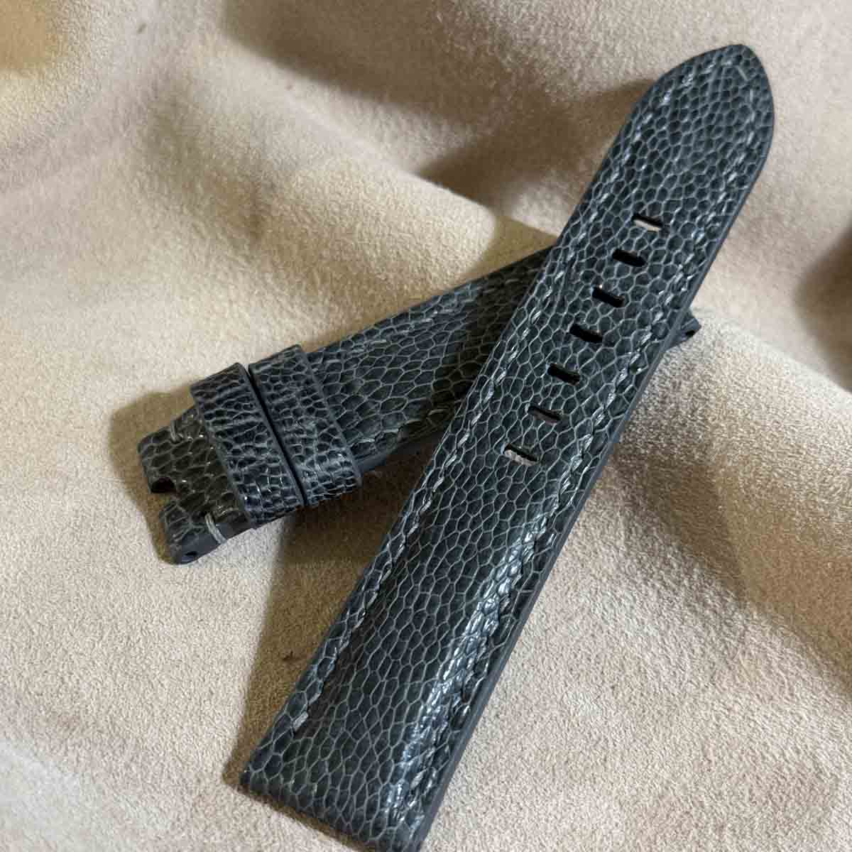 ost-427 オーストリッチレザー 腕時計 ベルト グレー (ラグ幅22 mm - バックル幅20 mm) 1点物のオーストリッチレザー 腕時計用ベルト