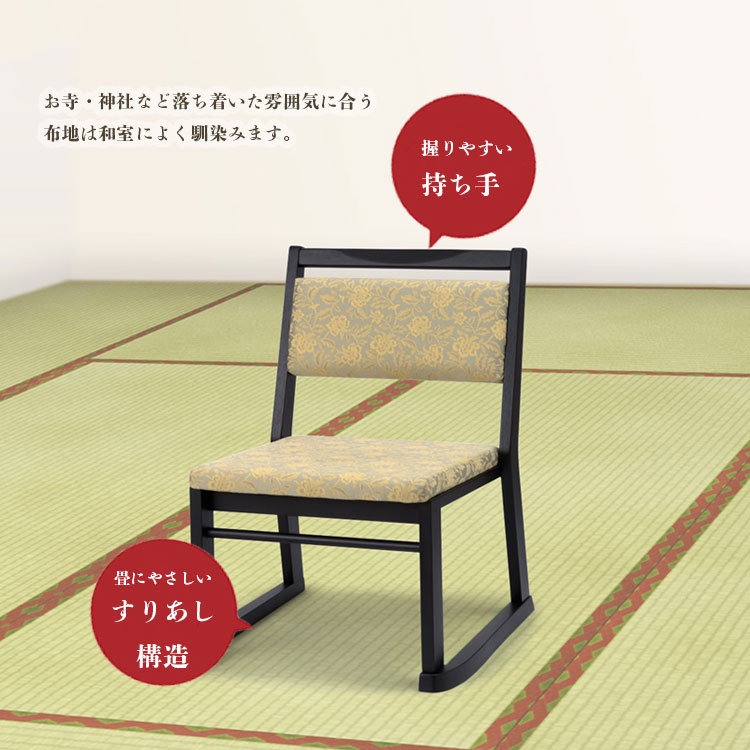 【新生活応援セールポイント10倍】【完成品・送料無料】椅子 高座椅子 3サイズ 座面高26cm 36cm 41cm 低め 肘無し ファブリック 布地 軽量 スタッキング 木製 本堂椅子 寺院椅子 お寺 法事 お盆 お彼岸 和室 畳部屋 和風 モダン 6型 BK