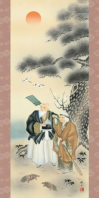 掛軸 掛け軸 高砂 浮田秋水 尺五立 約横54.5cm×縦190cm【送料無料】d3416 慶祝 慶事 縁起 祝賀 お正月 正月 新年 結納 結婚 婚約 長寿 和室 和 床の間 和風 お祝い 御祝 贈答 贈り物