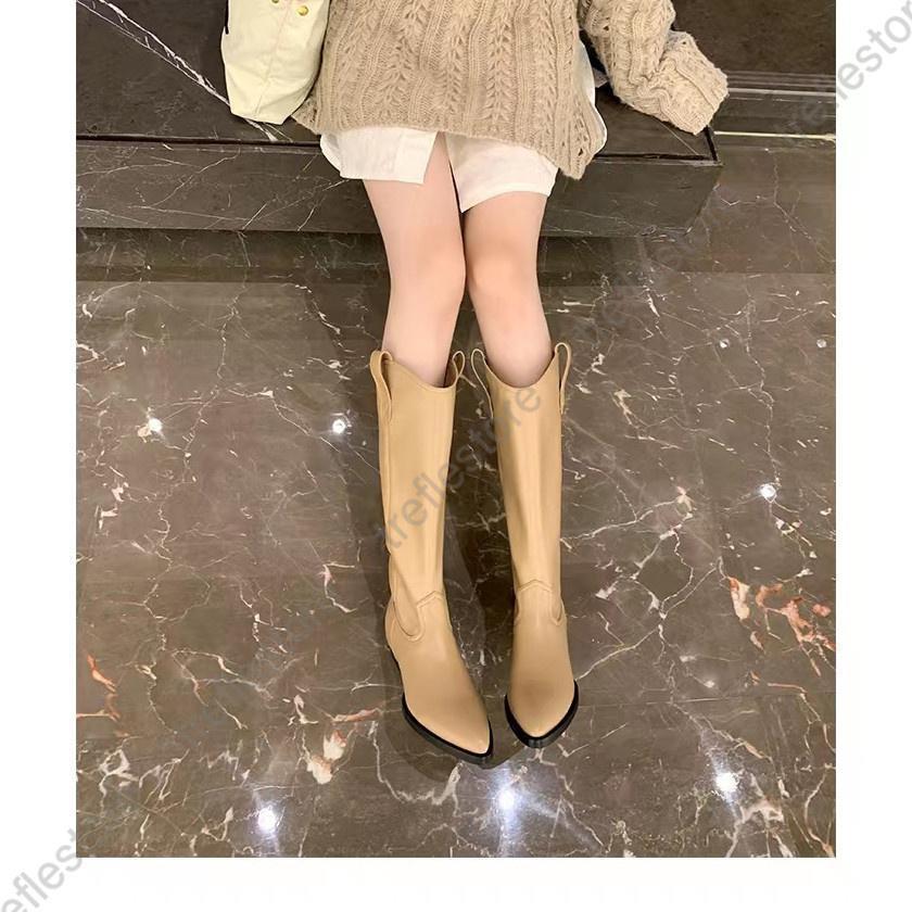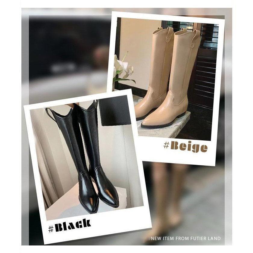 ブーツ レディース 秋 冬 ロング ポインテッド カジュアル 配色 インソール 高見え ウエスタン 韓国ファッション / ポインテッドウエスタンインソールブーツ