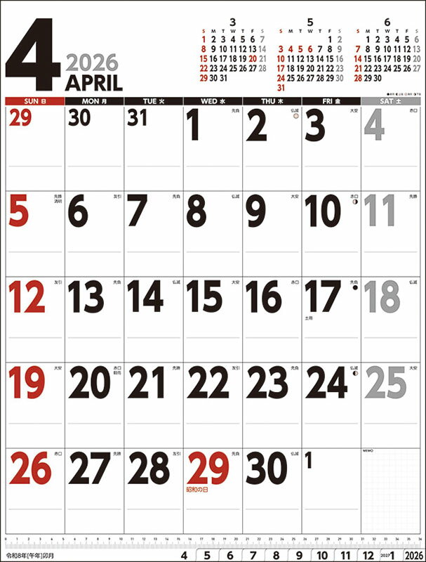 【送料込み】【取寄商品】 2026年カレンダー壁掛けスケジュール タテ型26CL-0639[9/20発売]